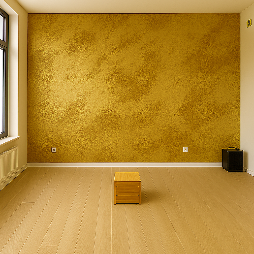Transform your walls with the rich texture and shimmering elegance of Antico Riflesso Sabbiato, a metallic decorative paint that recreates the beauty of a sandblasted finish. Designed for interior use, it combines soft opalescent color with the tactile charm of fine sand, producing a dynamic interplay of smooth and textured areas.