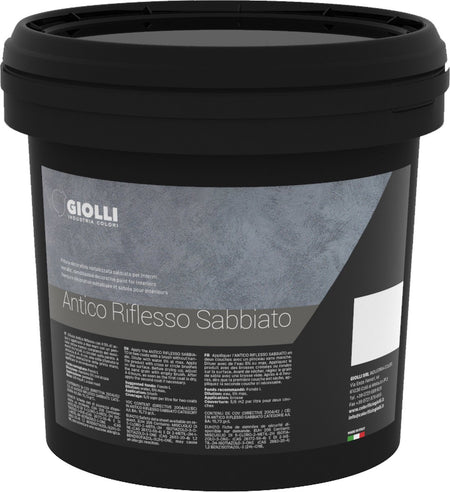 Transform your walls with the rich texture and shimmering elegance of Antico Riflesso Sabbiato, a metallic decorative paint that recreates the beauty of a sandblasted finish. Designed for interior use, it combines soft opalescent color with the tactile charm of fine sand, producing a dynamic interplay of smooth and textured areas.