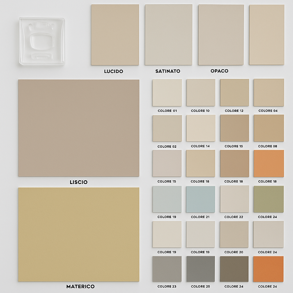 - Verkrijgbaar in drie korrelgroottes (Fondo, Medio, Fino) voor verschillende esthetische effecten.