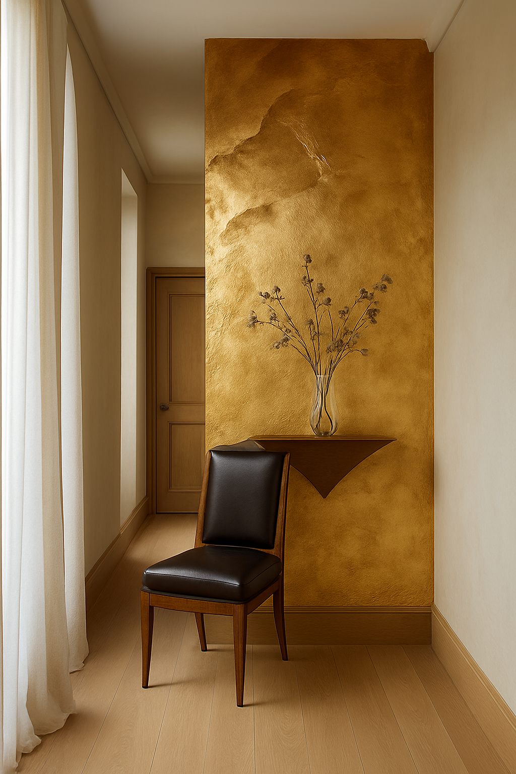 Narciso transformeert muren in glanzende, gestructureerde oppervlakken met subtiele metaaleffecten, perfect voor het creëren van interieurs met persoonlijkheid en verfijnde stijl.