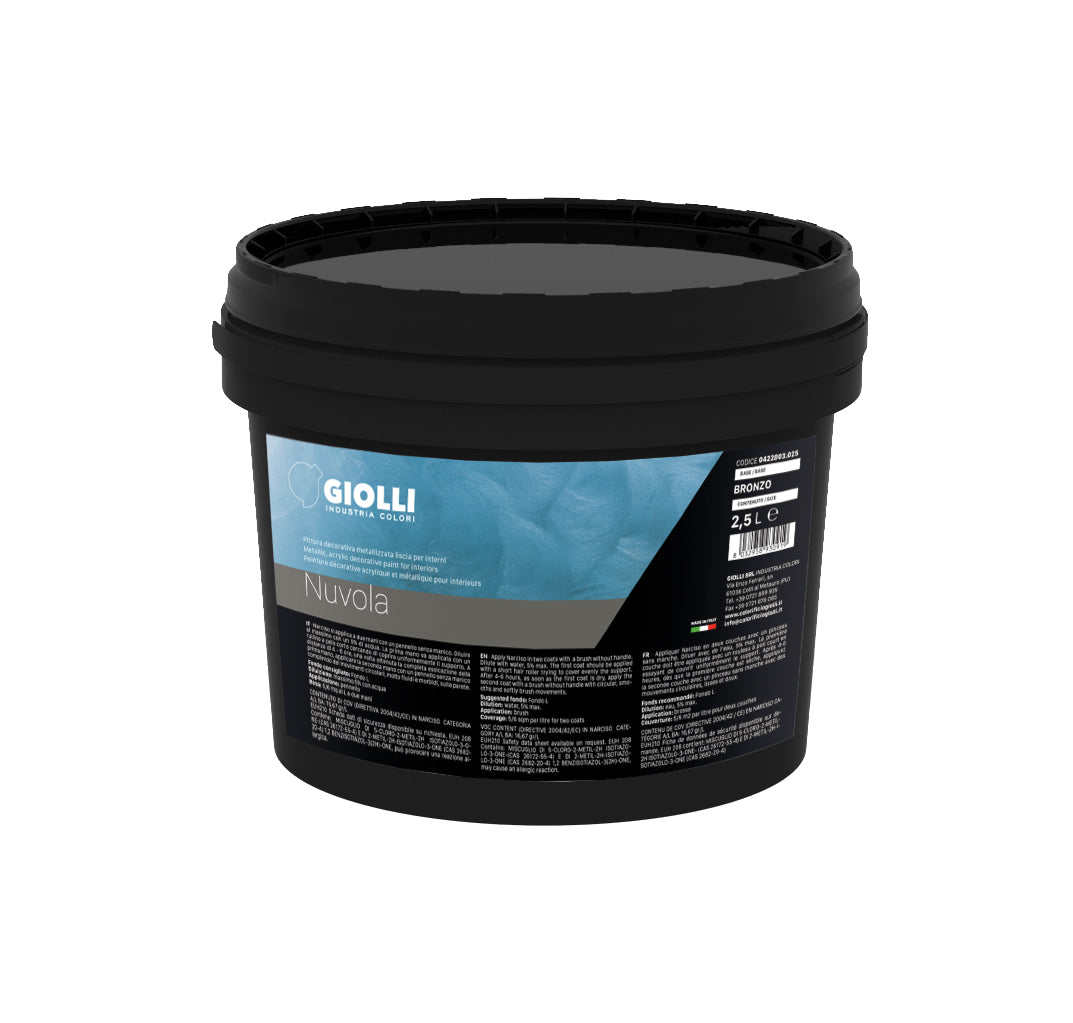 Nuvola / Silk Paint is een luxe decoratieve afwerking voor interieurs met een zijdezacht, metallic effect. Verrijkt met speciale metallic pigmenten, creëert het een elegant, iriserend en fluweelachtig oppervlak dat elke ruimte verfraait met een zachte, verfijnde glans. Nuvola heeft een hoge dekking en is gemakkelijk te verwerken. Bij aanbrengen met een spatel in twee lagen geeft het effect een uitstraling die doet denken aan metallic Venetiaans stucwerk.